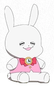 Little Bunny era un coniglietto di peluche bianco e paffuto, che indossava una camicia rosa con un papillon rosso.