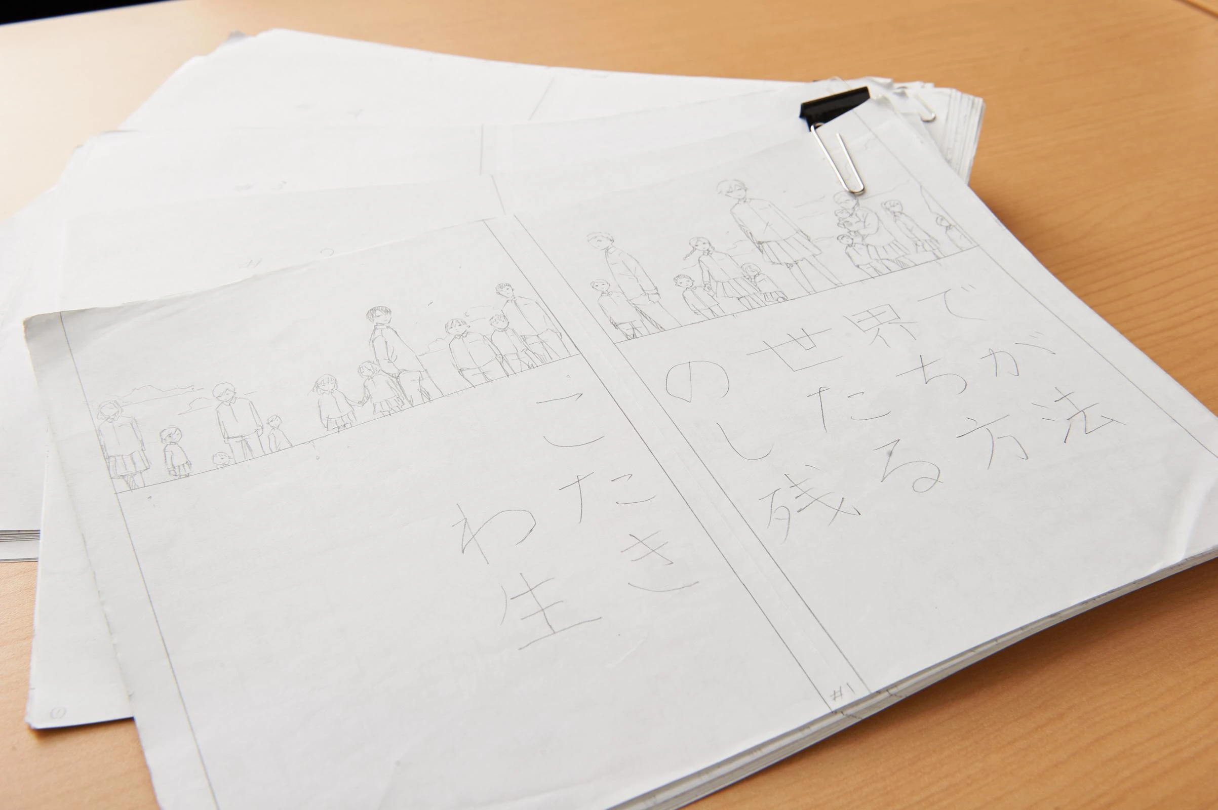 Il copione originale di The Promised Neverland, scritto e illustrato da Kaiu Shirai.